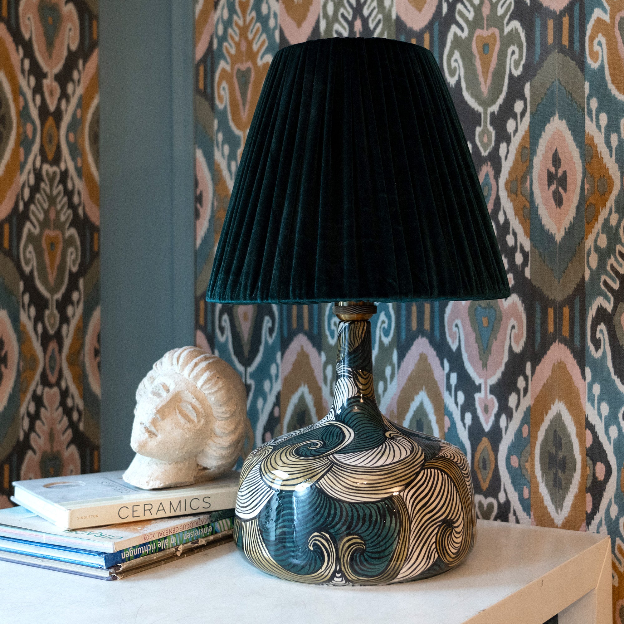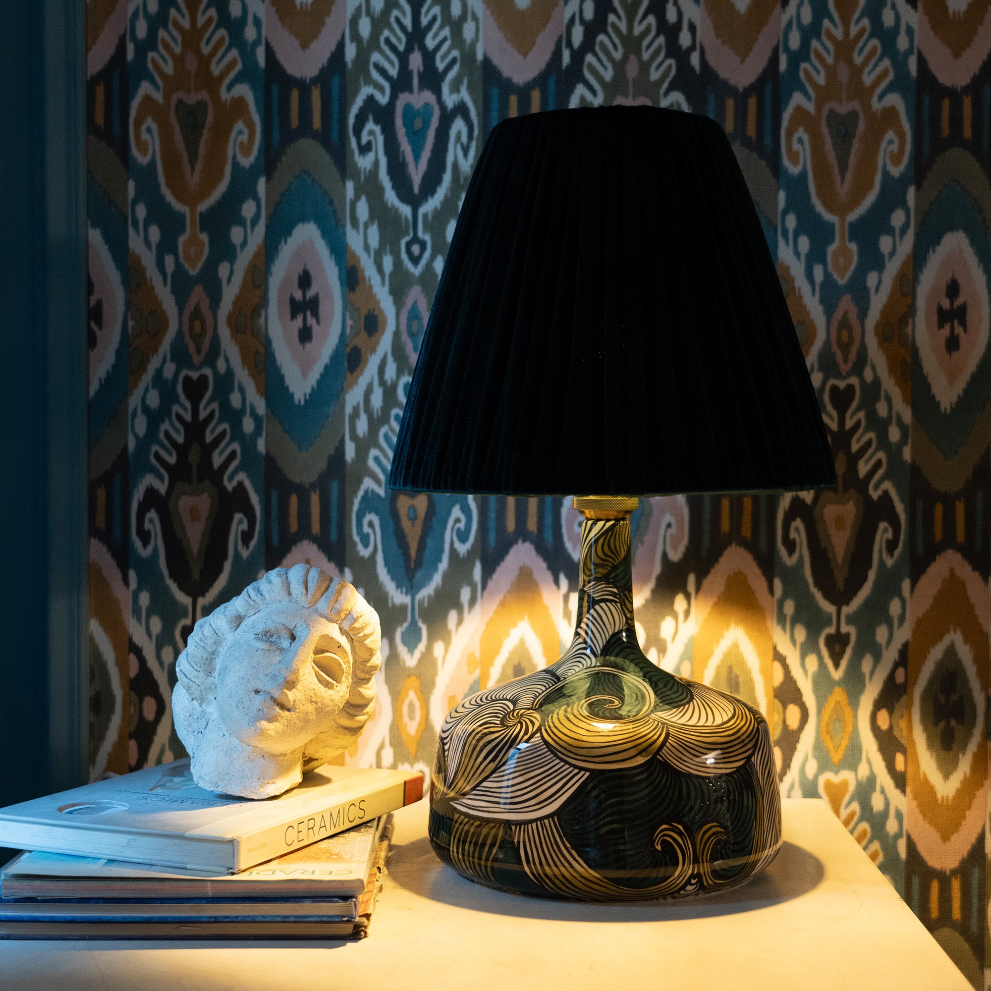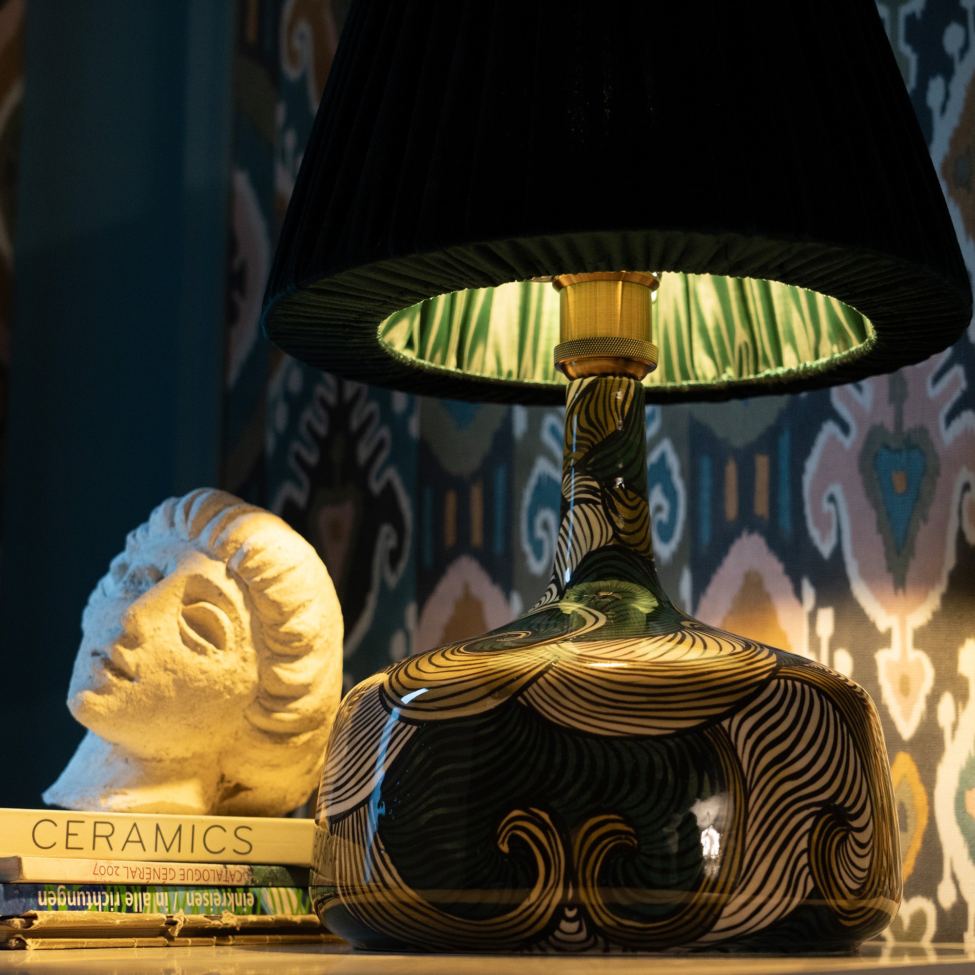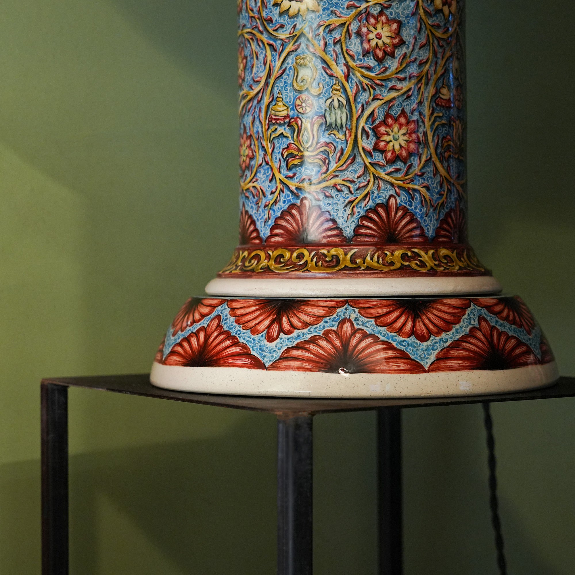 Unique Ceramic Base: Each lamp is handmade and hand-painted with intricate floral and geometric patterns, inspired by traditional art.